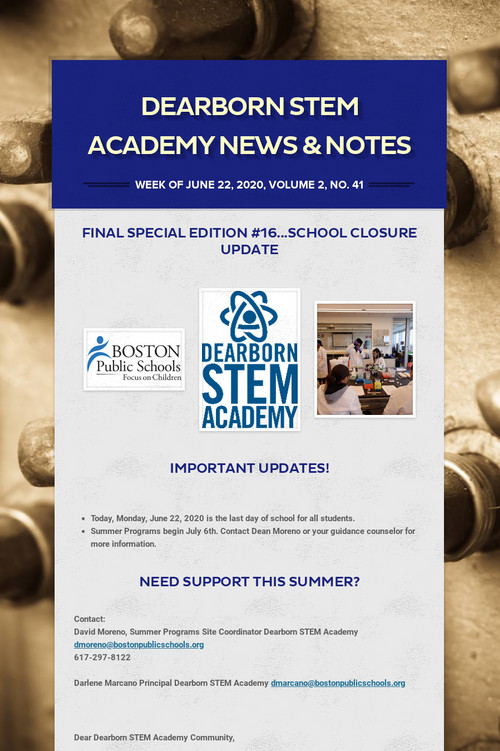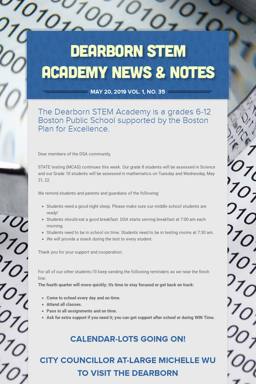 DEARBORN STEM ACADEMY NEWS NOTES - May 6 2019 Vol. Dearborn Public Schools STEM Middle School Calendars. Furthermore all students will participate in STEM-related apprenticeships intended to provide them with an introductory experience in the world of work.